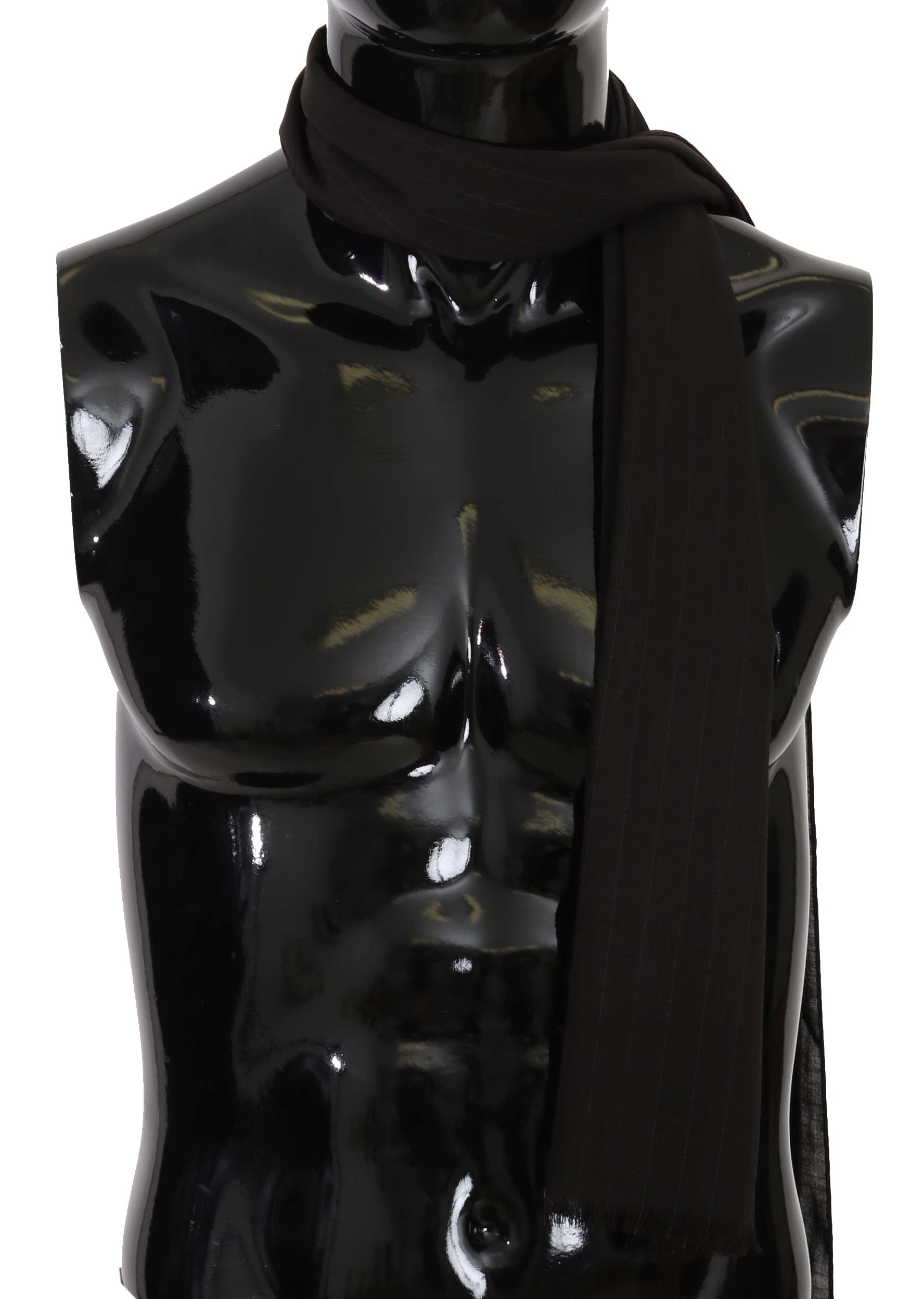 Dark Gray Virgin Wool Striped Pattern Wrap Scarf