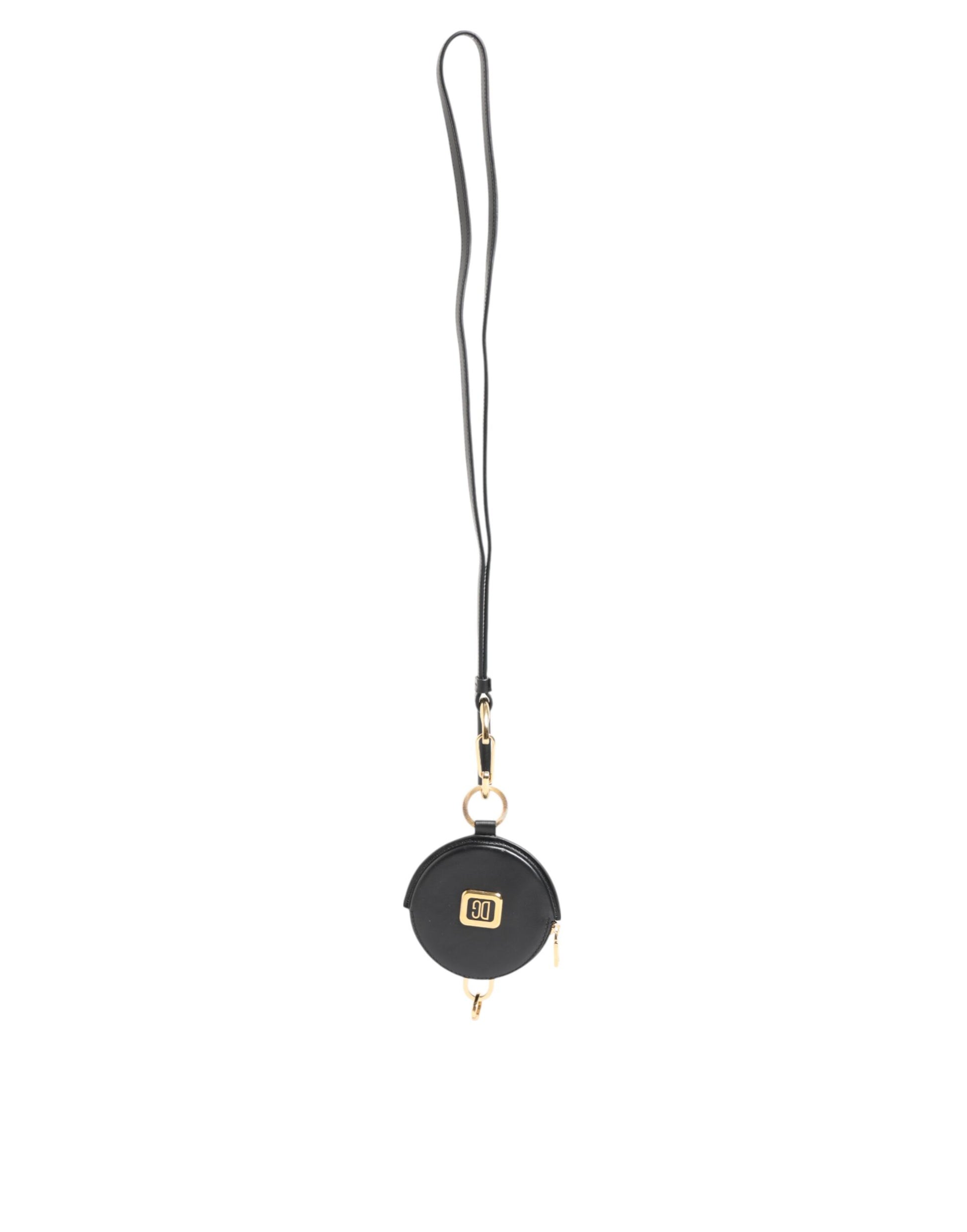 Black Round Leather DG Logo Coin Purse Lanyard Wallet
